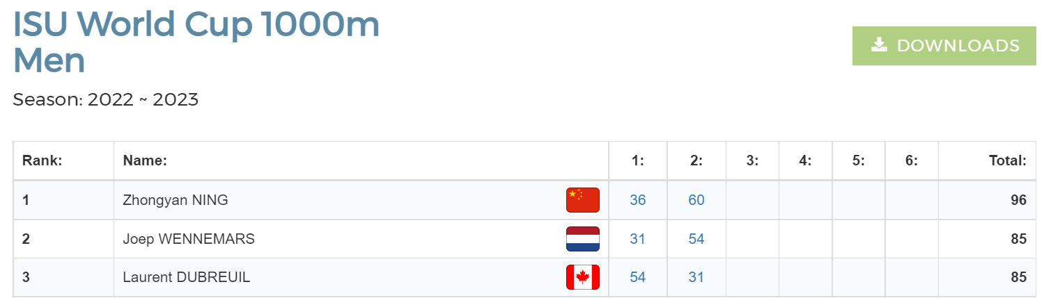 世界杯积分榜。图片来源:国际滑联官网