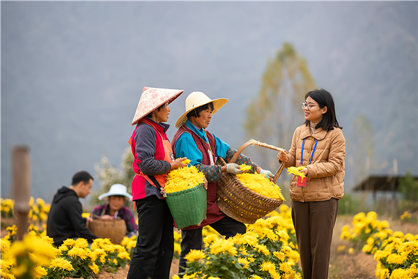 淳安县纪委监委深入推进漠视侵害群众利益问题专项治理,坚决查处啃食群众利益的“微腐败”,为乡村振兴保驾护航。图为该县纪检监察干部在大墅镇桃林村金丝皇菊种植基地走访群众,了解相关情况。谢航凯 摄