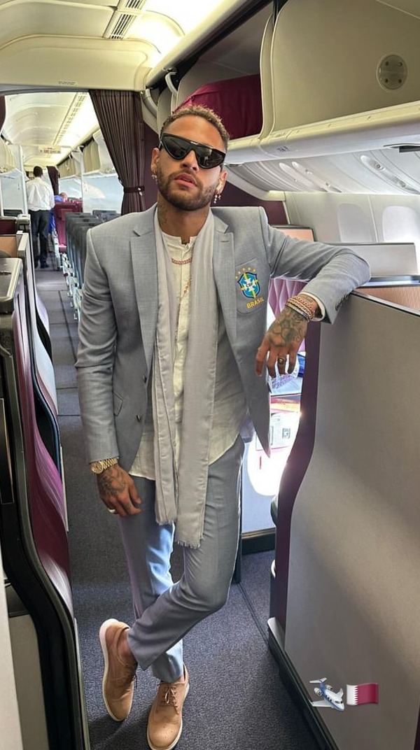 11月20日,巴西队乘坐包机飞抵卡塔尔。一身笔挺的西装再加上墨镜,内马尔一亮相就引来了阵阵掌声。从初出茅庐时的泡面头到如今帅气逼人,内马尔也已经成长为了巴西队最为闪亮的球星。