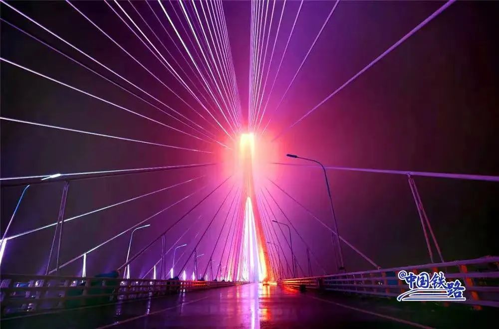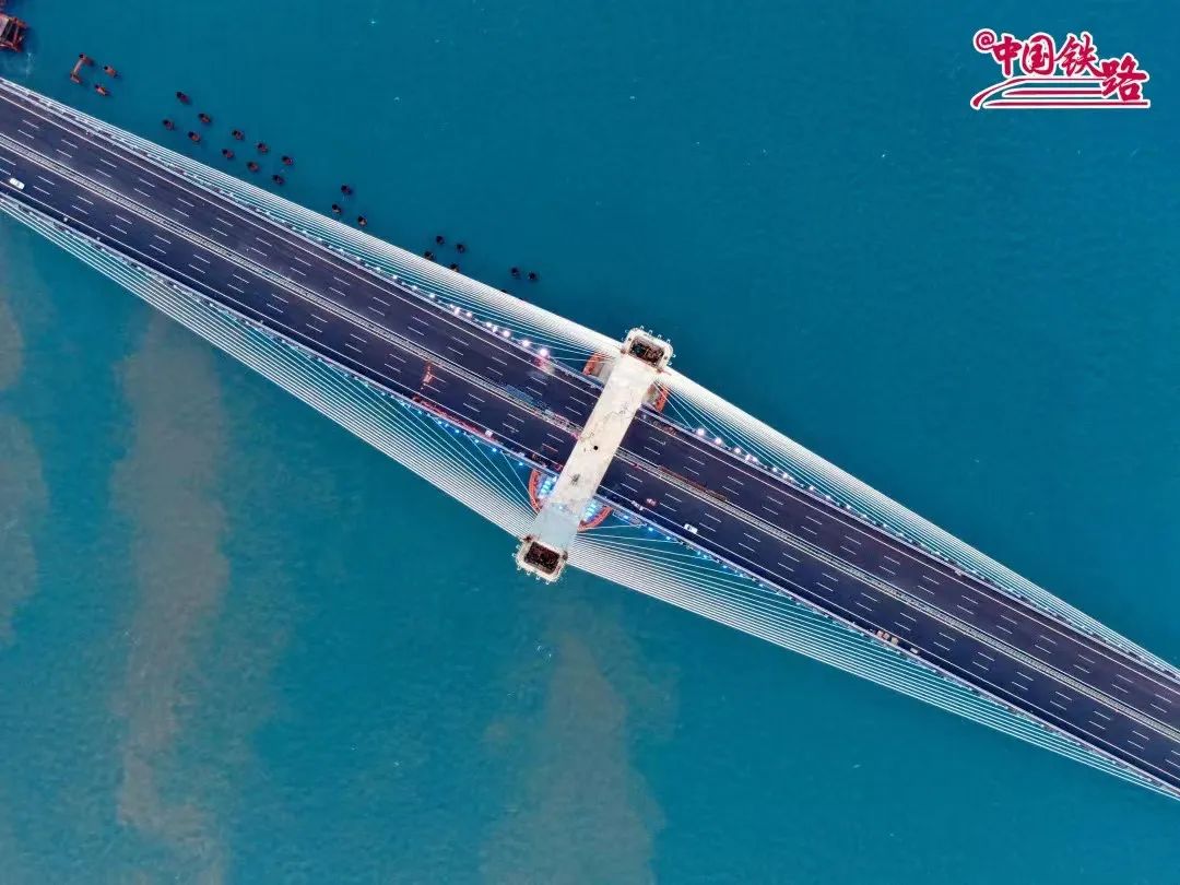 大桥全长1290米,这座双塔斜拉桥的630米主跨刷新了公铁两用斜拉桥跨度的世界纪录。