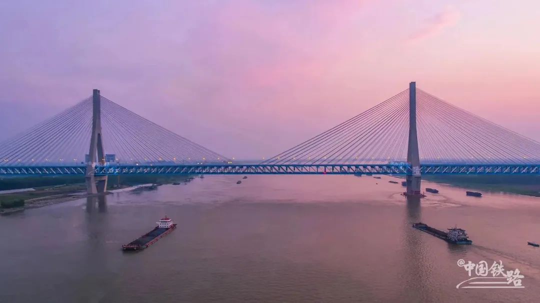 鳊鱼洲长江大桥是我国首座交叉索斜拉桥,也是世界上500米跨度以上的高速铁路斜拉桥中首次采用钢箱梁主梁的大桥,顶推总重量大约6000吨,是目前世界上顶推重量最重的铁路桥钢箱梁。
