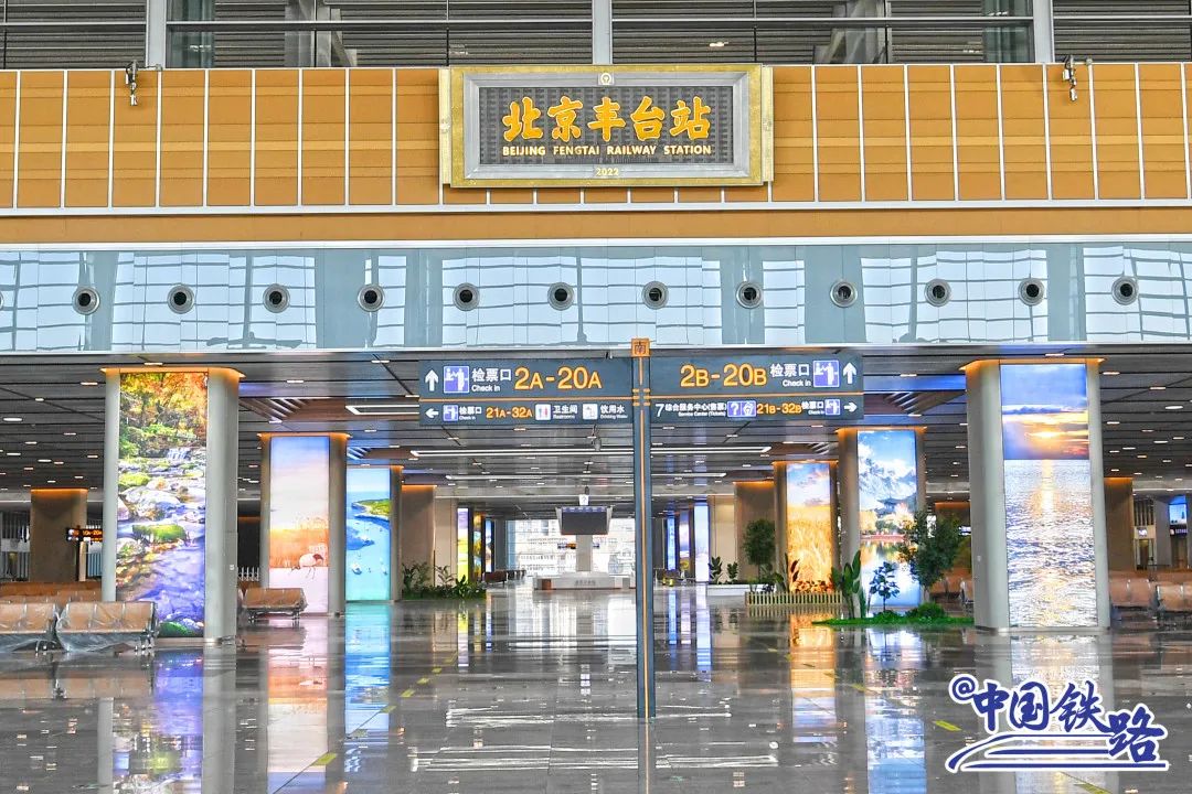 亚洲最大铁路枢纽客站北京丰台站站房建筑面积约40万平方米,每小时最高可容纳14000人同时候车,设有32条到达出发线,32个客运站台面。
