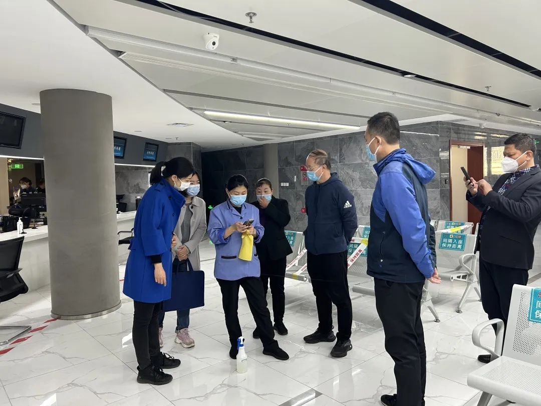驻区政府办纪检监察组到航天桥政务大厅查验保洁人员核酸检测和疫苗接种情况。
