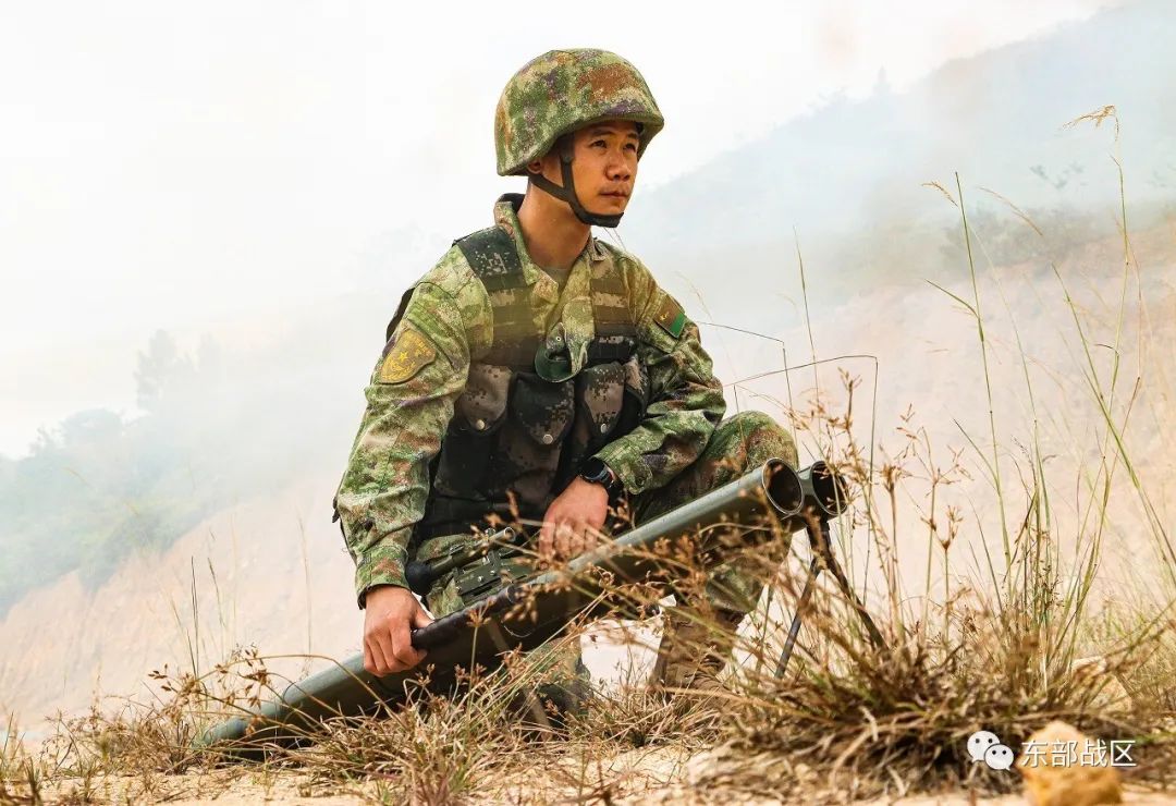 官兵肩扛火箭筒蓄势待发