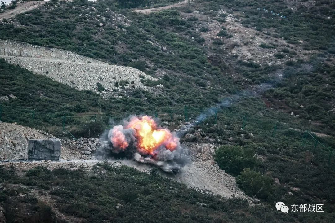 落弹区瞬间火光四射