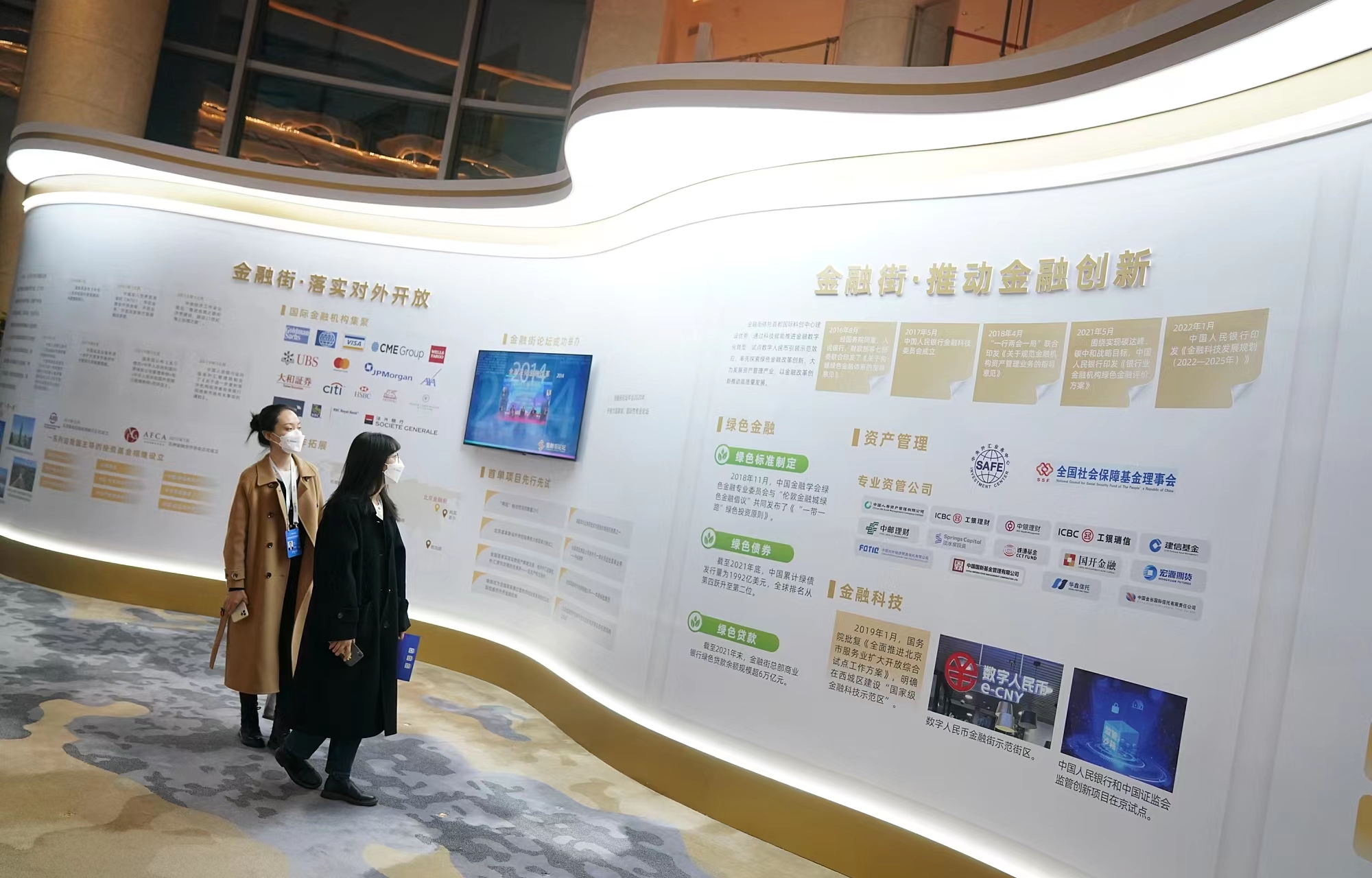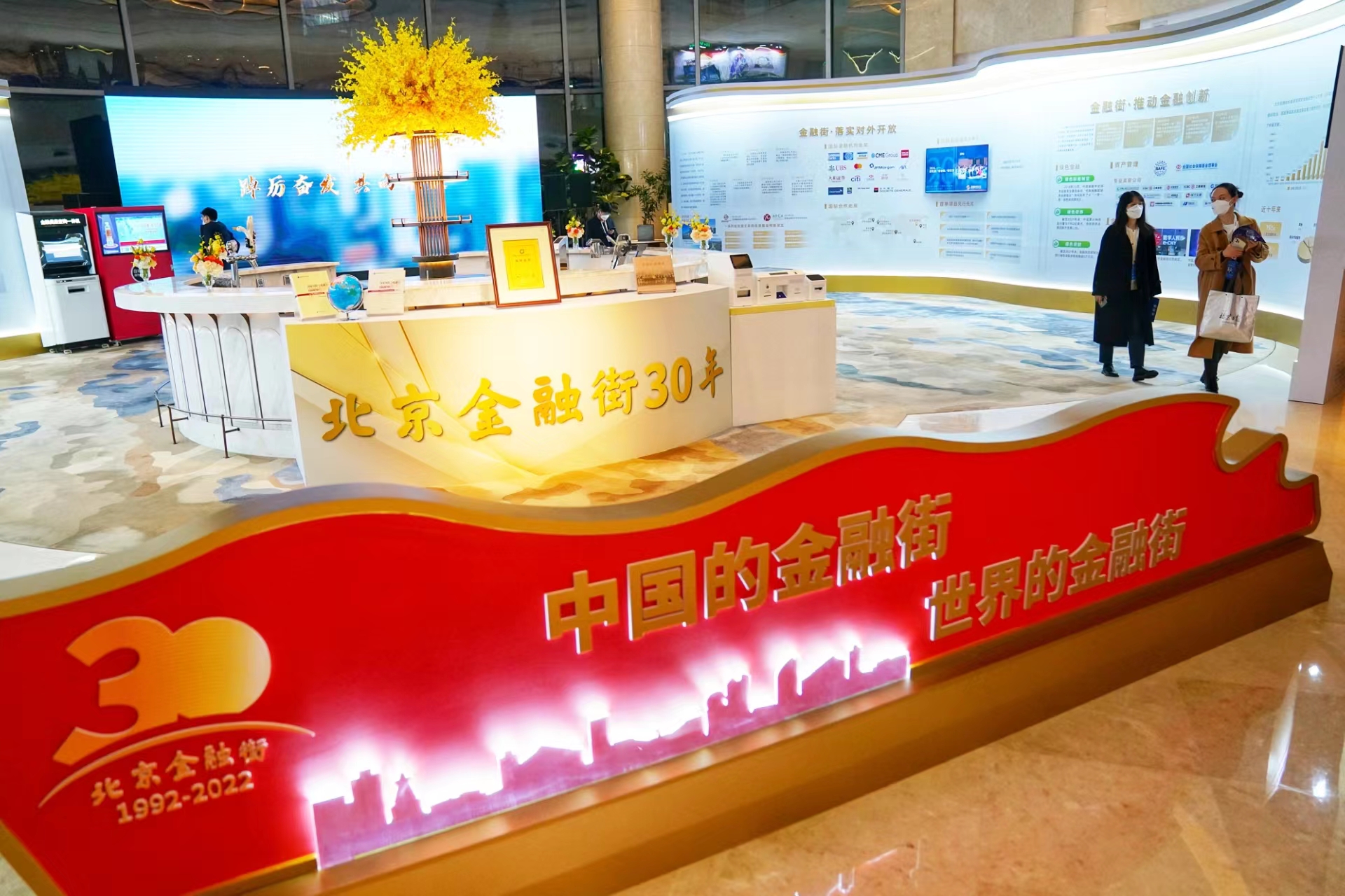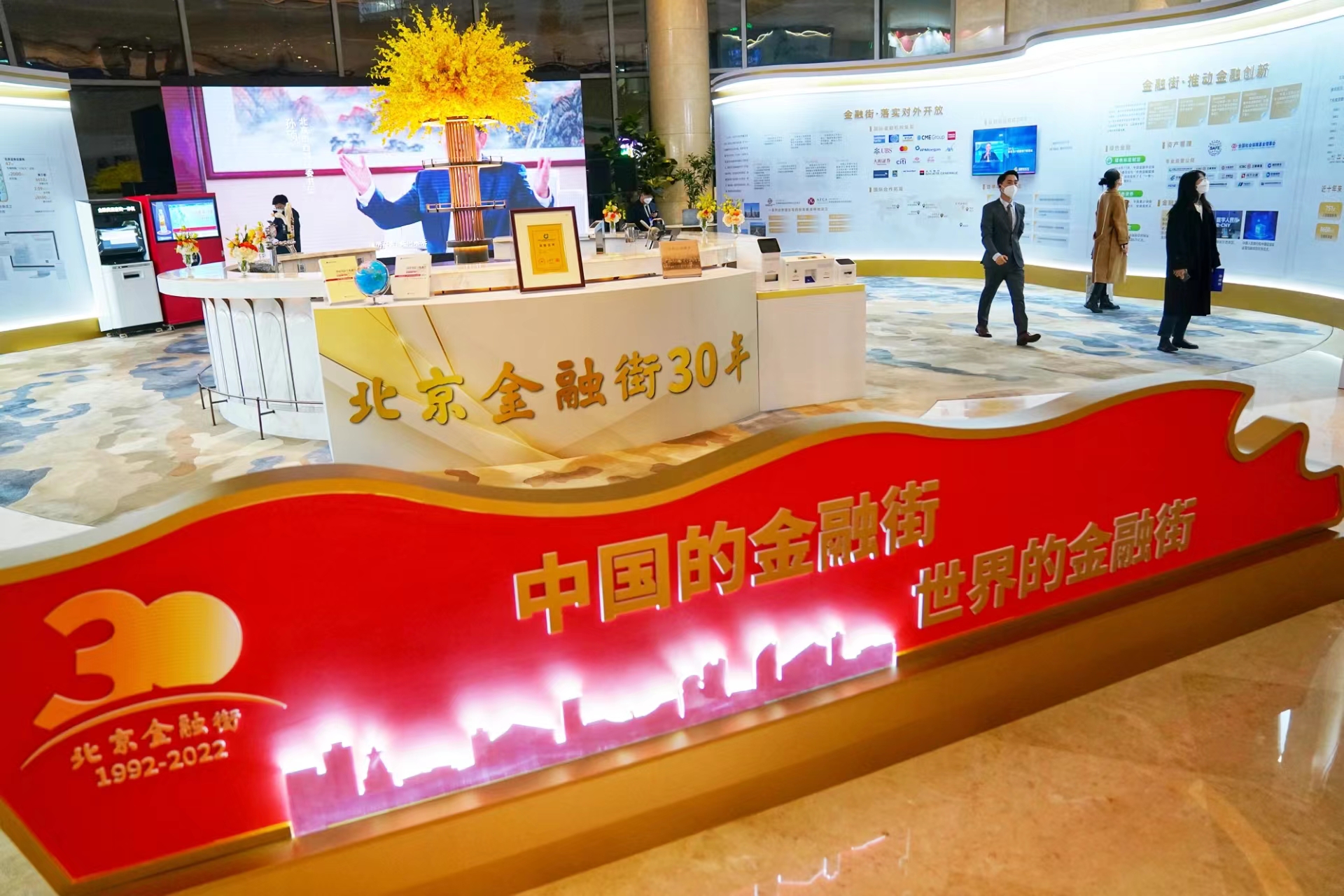 在2022金融街论坛年会期间,金融街建设与发展30年展览展示在主会场布展,展览以“奋进新征程·金融街再出发”为主题,全面总结展现30年来金融街服务中国金融改革发展历程和成果,擘画未来金融街美好蓝图。