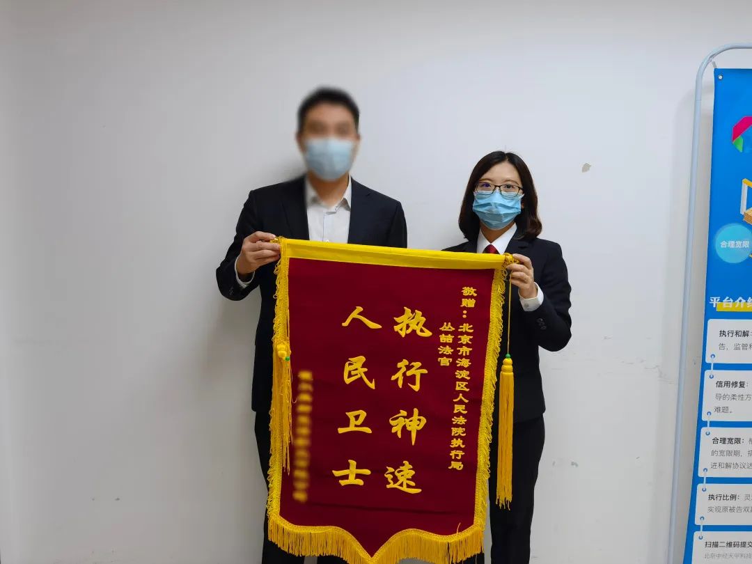 “在我们公司快坚持不下去的时候,是法官您给了我们希望,几十位员工的工资终于有了着落”,某影视公司的负责人充满感激地说,并把一面写有“执行神速,人民卫士”的锦旗递到了海淀法院法官丛喆手中。“受新冠肺炎疫情影响,影视公司接二连三倒下,如果这笔执行案款回不来,下一个倒下的就是我们!”公司负责人不断向法官道谢,言语中可见心情之激动。
