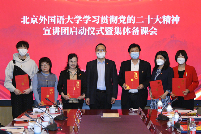 (北京外国语大学学习贯彻党的二十大精神宣讲团成员代表接受聘书)