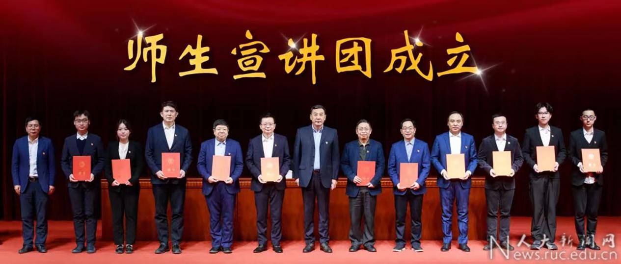 中国人民大学成立学习贯彻党的二十大精神中国人民大学师生宣讲团,由党委书记张东刚、校长林尚立担任团长。宣讲团以高度的政治责任感和历史使命感肩负起学习宣传、研究阐释、贯彻落实党的二十大精神的光荣使命,不断推动党的创新理论进教材、进课堂、进头脑。