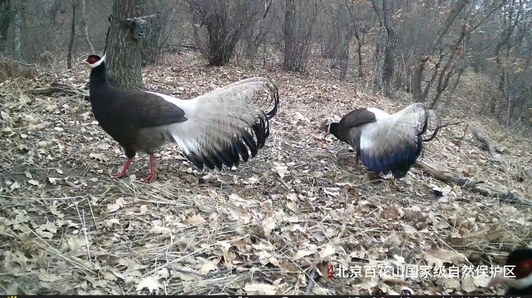 2022年11月20日,北京百花山国家级自然保护区大木场(大木场距离生活区域直线距离不足1公里)长亭区域监控系统发现4只褐马鸡共同觅食。