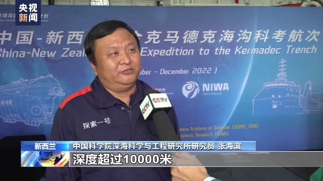 中国科学院深海科学与工程研究所研究员 张海滨:克马德克海沟位于新西兰北部海域,深度超过10000米,是世界上最深的几个海沟之一。本次中新联合科考对深入理解克马德克海沟的地质构造以及环境和生命特征有着非常重要的意义,同时,经过本次科考,将有力推动中新两国在深渊科学领域开展广泛和深入的交流。