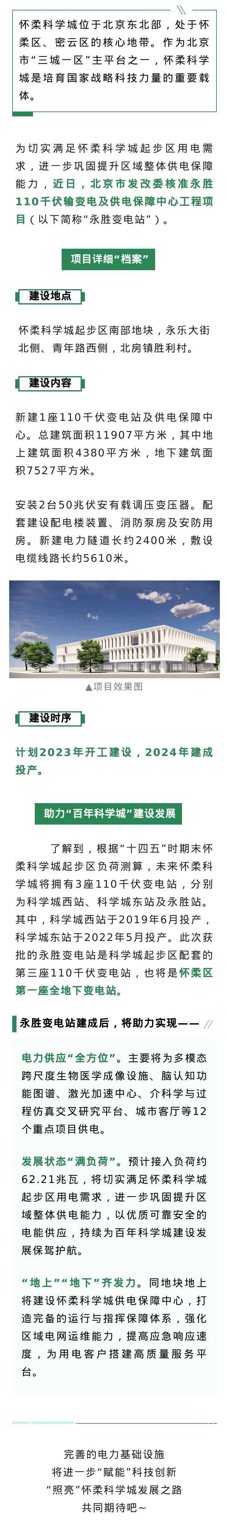 2024年投产!怀柔首座全地下变电站“充电”科学城→