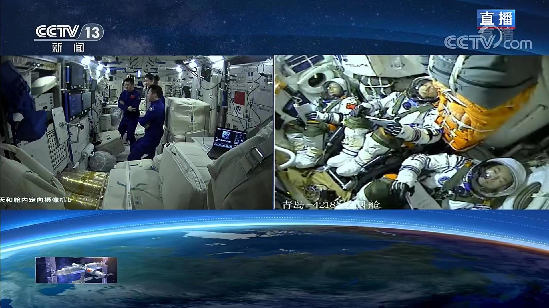 神十四乘组在太空看神十五发射。