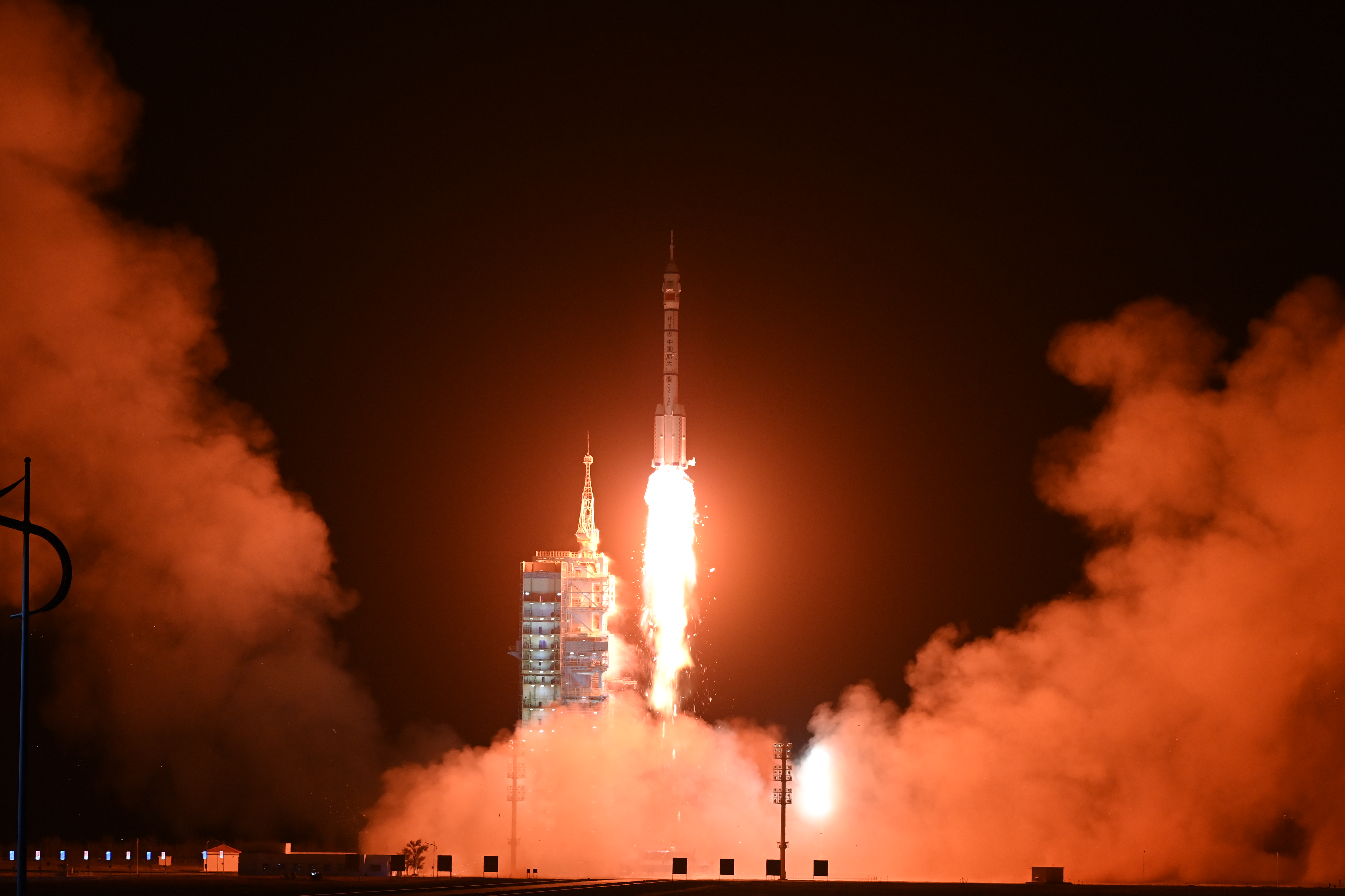 搭载神舟十五号载人飞船的长征二号F遥十五运载火箭在酒泉卫星发射中心点火发射,3名航天员踏上飞天圆梦之旅。