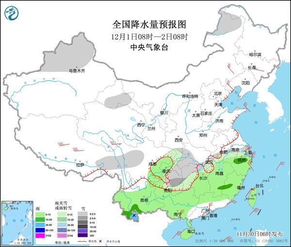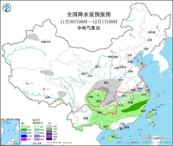 今明两天(11月30日至12月1日),我国黄淮地区的雨雪过程基本结束,长江沿线一带陆续转雪,江苏、安徽、湖北、湖南和贵州等地的部分地区或将迎来今冬初雪。气温方面,今天我国大部地区气温继续走低,但明天开始,北方地区会率先开启升温进程,南方气温则还会继续下探,公众需继续做好防寒保暖工作。