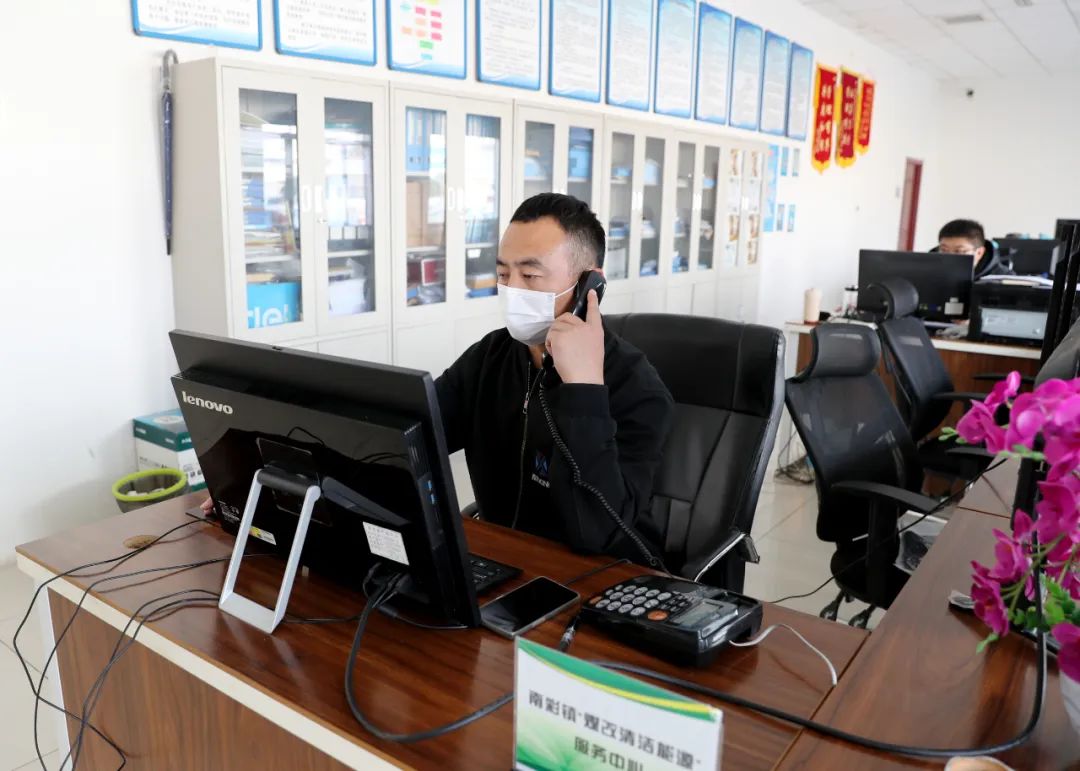 南彩镇煤改清洁能源服务中心工作人员接听报修电话。