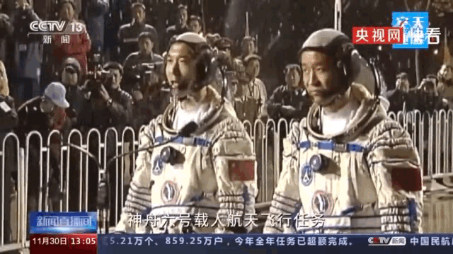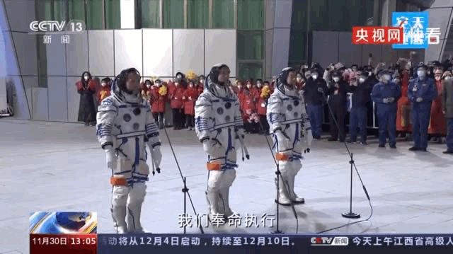2022年11月29日,神舟十五号出征,费俊龙(中)、邓清明、张陆进入太空。