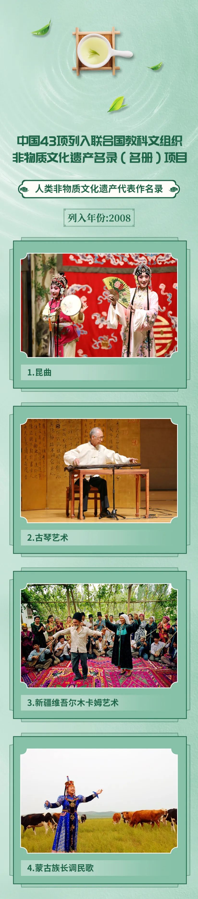 北京时间11月29日晚,我国申报的“中国传统制茶技艺及其相关习俗”在摩洛哥拉巴特召开的联合国教科文组织保护非物质文化遗产政府间委员会第17届常会上通过评审,列入联合国教科文组织人类非物质文化遗产代表作名录。至此,我国共有43个项目列入联合国教科文组织非物质文化遗产名录、名册,居世界第一。