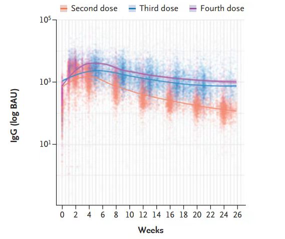 [4] Canetti M, Barda N, Gilboa M, et al. Six-Month Follow-up after a Fourth BNT162b2 Vaccine Dose. N Engl J Med. Published online November 9, 2022:NEJMc2211283. doi:10.1056/NEJMc2211283