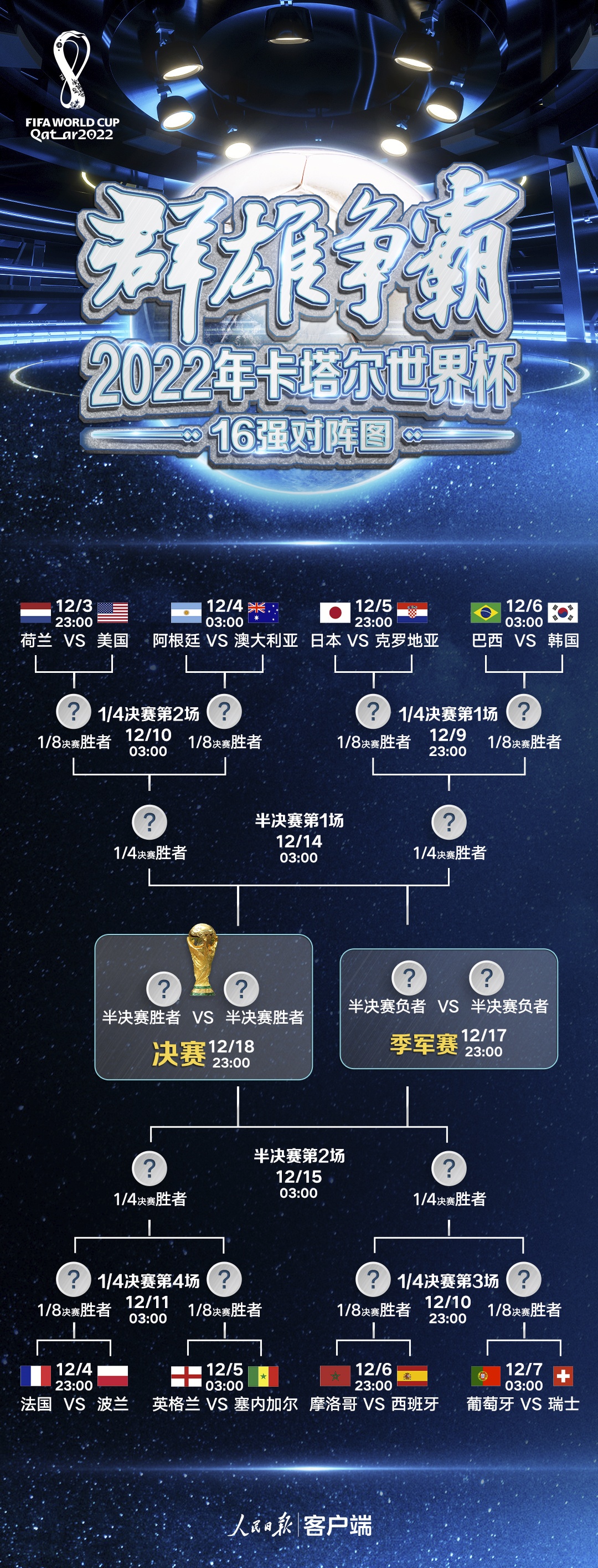 群雄争霸!卡塔尔世界杯16强对阵图来了