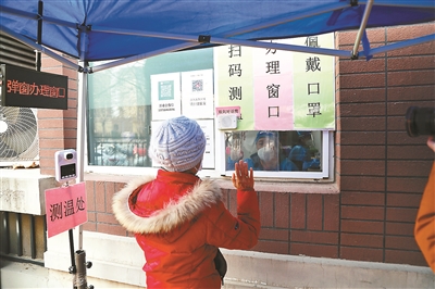 北青报记者看到,办理窗口还安装了可活动式透明窗户,内外配备双向扩音器、对讲机,方便与居民沟通,并在外侧空旷露天区域依序设置无接触扫码测温处、信息登记处等,实现弹窗办理无接触。据海梓嘉园社区党总支书记刘卫华介绍,此举为工作人员筑起安全屏障的同时,也在一定程度上避免了空气传播病毒的可能性。