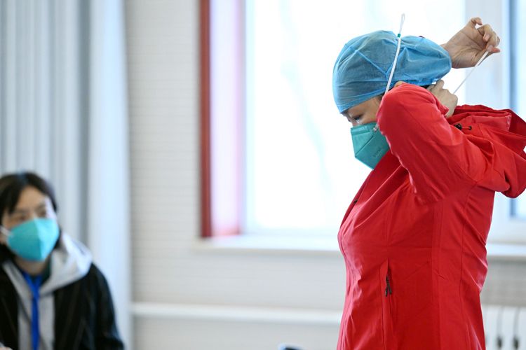 12月2日,小汤山方舱医院,感控专员现场演示如何正确佩戴口罩。小汤山方舱医院临时党委委员、副院长蔡超介绍,本轮疫情中,小汤山方舱医院于11月5日启用,目前已开放8个片区,开放床位数1050张。截至12月1日19时,累计收治2249人,累计出院1310人,累计转院65人。