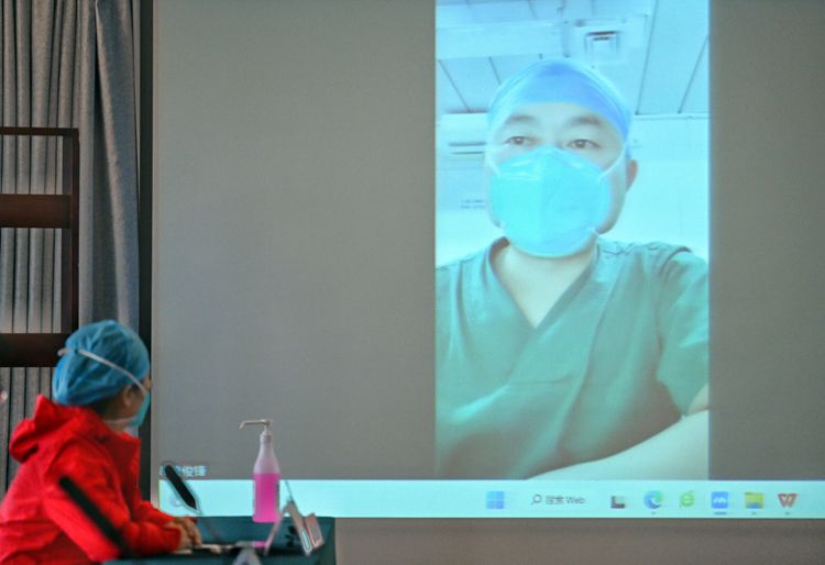 12月2日,小汤山方舱医院A区多功能厅,现场与舱内医生连线。在救治过程中,小汤山方舱医院根据患者的具体情况、临床表现、基础病等因素分类、分型治疗。“有的患者应用抗病毒治疗,有的患者进行了针对基础病的全身状况调理,还有很多患者症状非常轻,针对这部分患者,主要做了一些健康观察。”蔡超表示,在治疗过程中,小汤山方舱医院还采用了中西医协同的治疗方式。