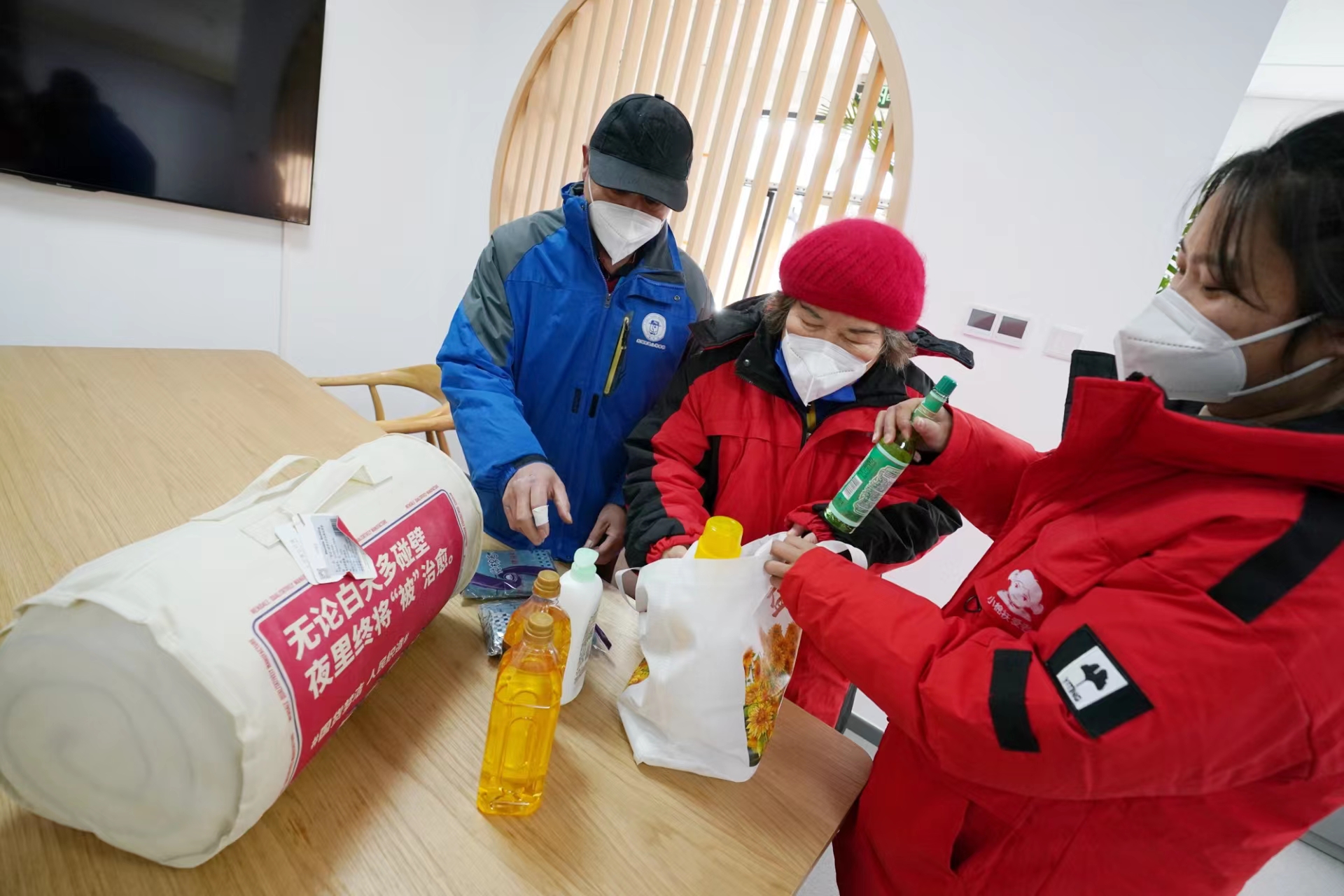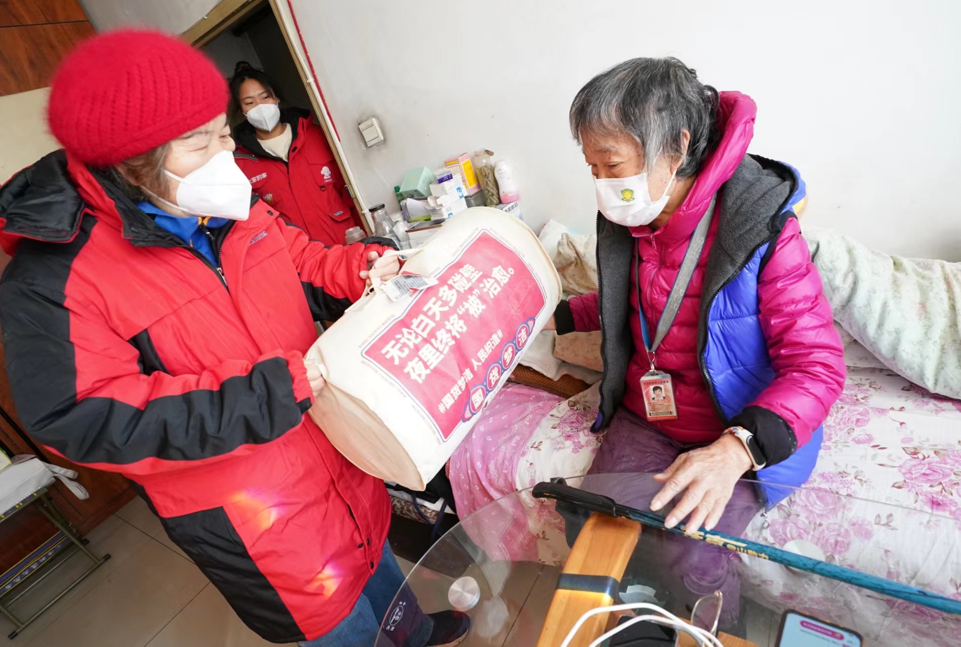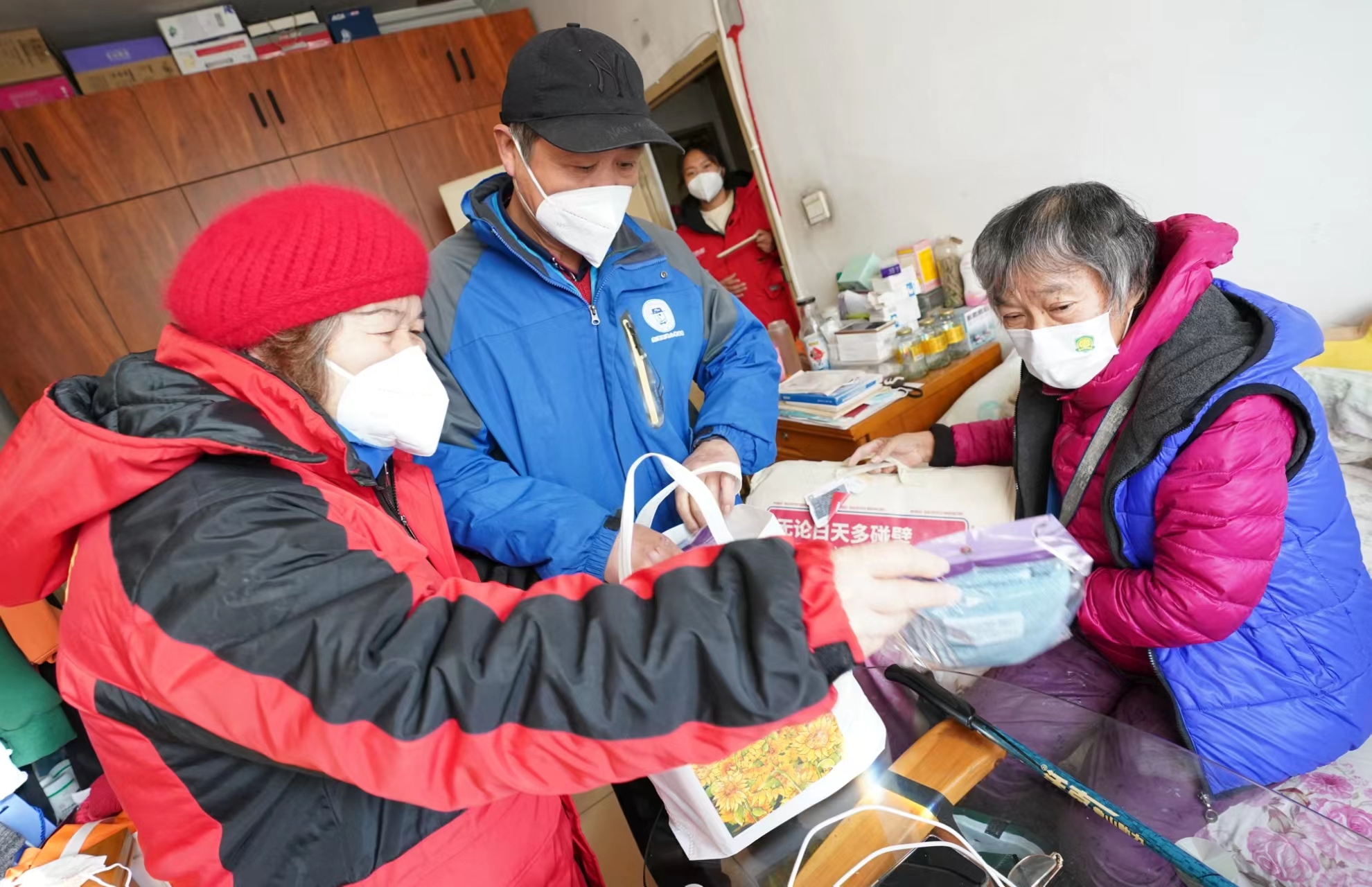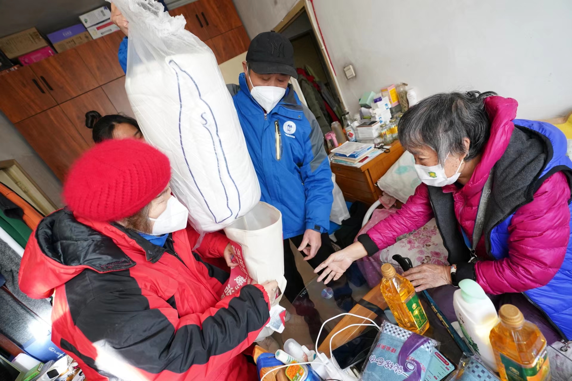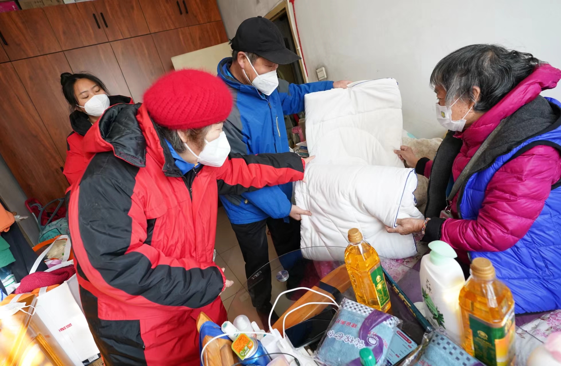 12月4日,在国际志愿者日即将到来之际,在龙潭街道幸福社区养老服务驿站工作人员的陪同下,“夕阳手拉手互助团”和“小棉袄爱老”的志愿者们将爱心物资,送到社区养老家庭照护床位的老人家中。