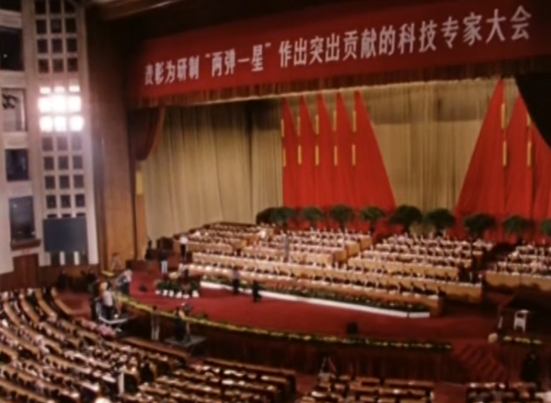 历史影像:1999年9月18日,中共中央、国务院、中央军委在北京人民大会堂隆重举行表彰为研制“两弹一星”作出突出贡献的科技专家大会。江泽民同志为获奖人员颁发奖章和证书。他在讲话中指出,伟大的事业,产生伟大的精神。在为“两弹一星”事业进行的奋斗中,广大研制工作者培育和发扬了一种崇高的精神,这就是热爱祖国、无私奉献,自力更生、艰苦奋斗,大力协同、勇于登攀的“两弹一星”精神。