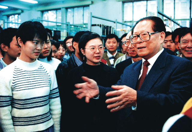 11月7日 江泽民视察北京市第四中学,听取校长汇报,与师生座谈,参观体育馆、科技楼并观看学生的物理课。还与教师、干部合影,为学校题名,并建议四中学生对文学经典的名篇、名句一定要背诵。