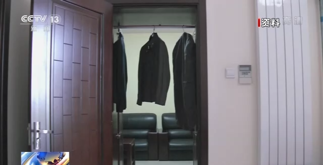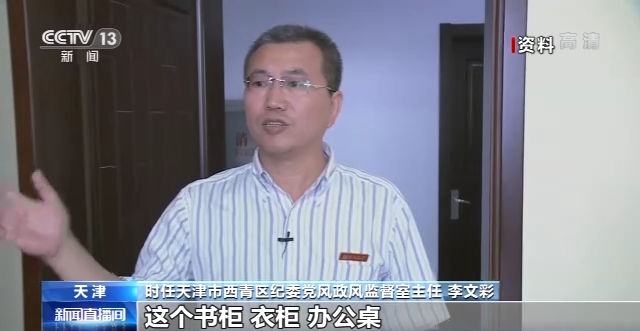 时任天津市西青区纪委党风政风监督室主任 李文彩:进来以后我们可以看到,书柜、衣柜、办公桌跟普通的这个办公用房是一模一样的。在勘查的过程当中,我们发现这个衣柜透出一道亮光,我们觉得挺可疑,打开以后里面挂着衣服,这个衣柜没有了后挡板,直通里间,俨然就是一个暗门。这个里间里边,床铺、电视、衣柜、冰箱、卫生间、洗浴设施一应俱全的。