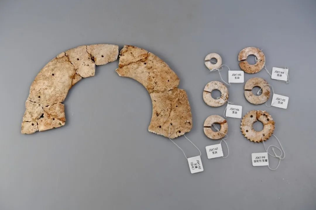 出土的最大玉璜及玉玦、齿轮形玉璧。徐旻昊 摄