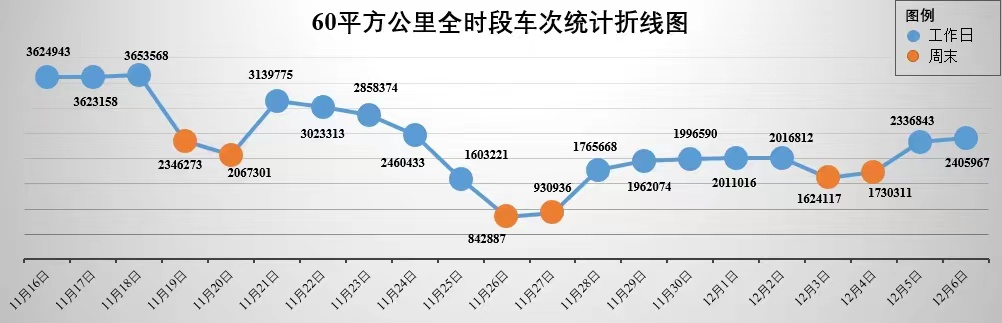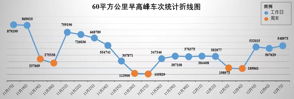 据北京市高级别自动驾驶示范区工作办公室12月8日发布的数据显示:当天北京经开区早高峰时段(7:00-9:30),整体过车数比上周同期增加64.42%,晚峰时段(16:30-19:00),整体过车数比上周同期增加32.47%,距离去年同期早晚高峰最高车流相差20%左右。