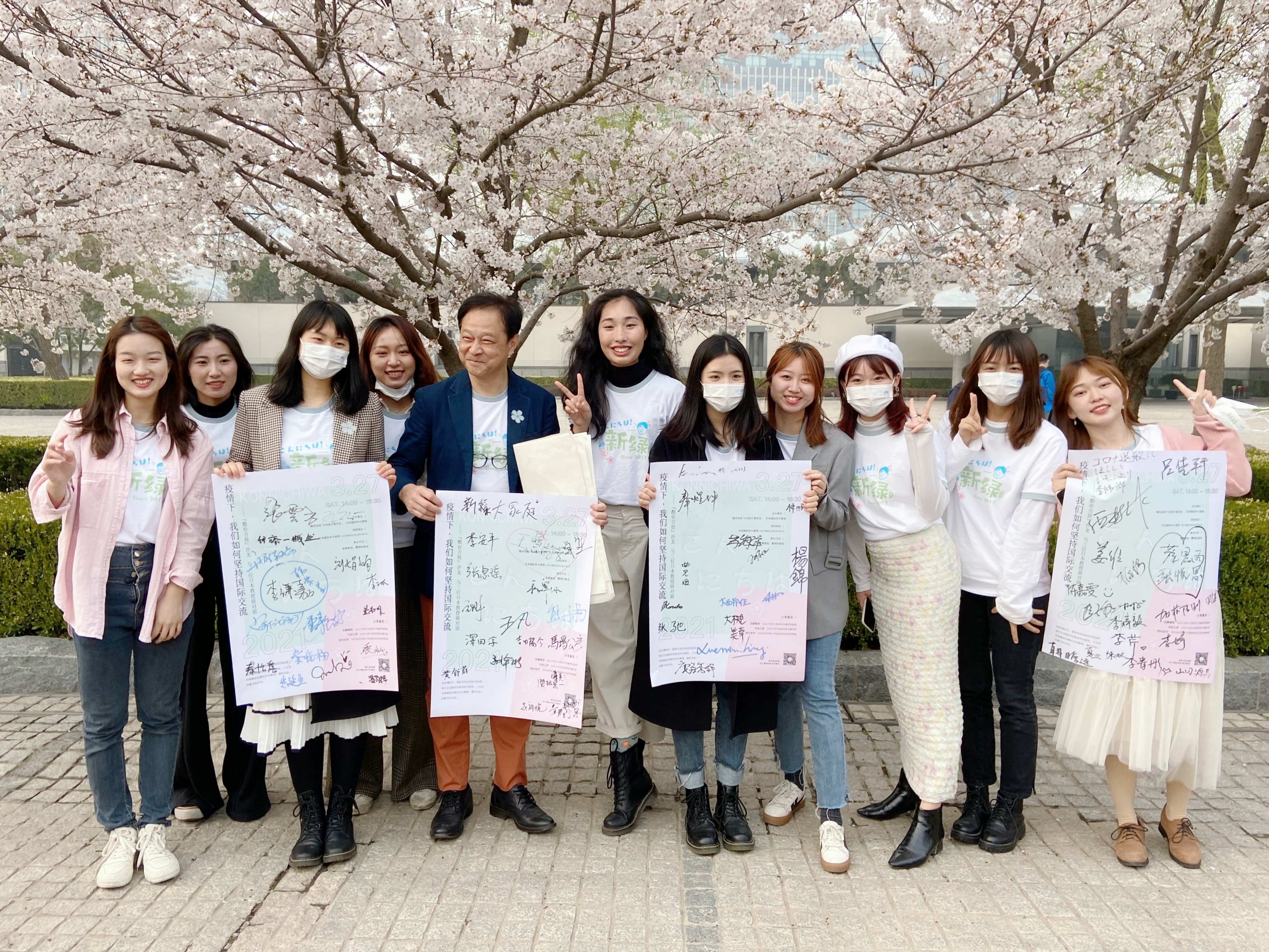 加藤隆则和自己的中国学生在一起