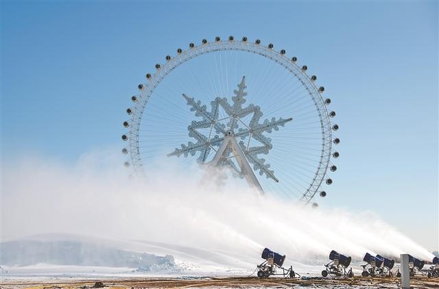 人工造雪机齐喷射。本报记者 郭俊峰摄