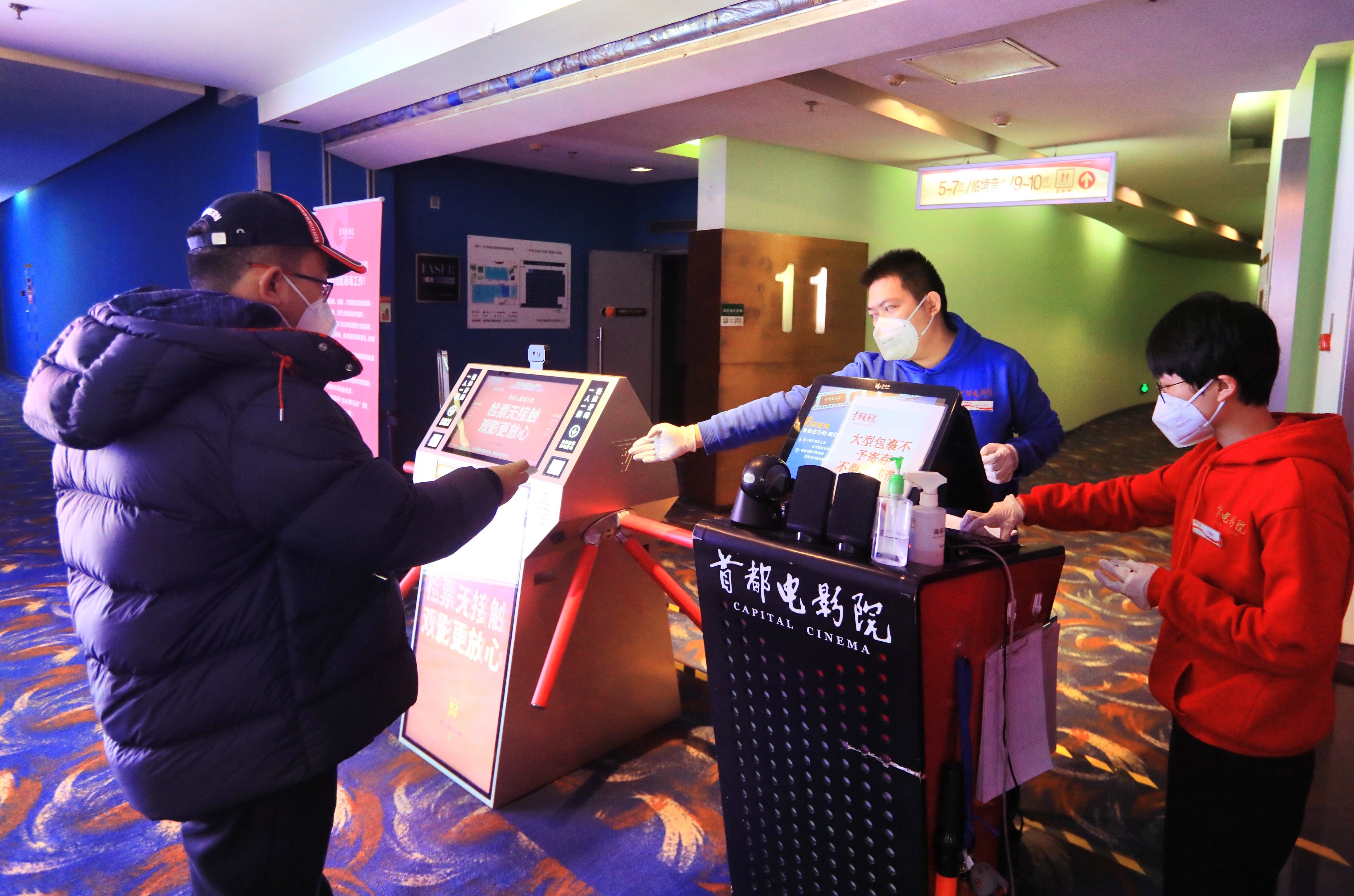 首都电影院副总经理于超介绍:“影院对于防护的要求并没有降低,我们的工作人员每天营业前对大厅、影厅等处进行消杀,按75%上座率限流。”