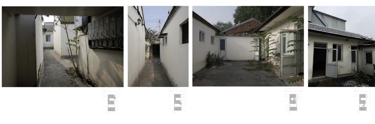 设计的做法是在保留三排9间房外墙轮廓的基础上重新对房间进行划分,房子之间的空地即院落也进行再次划分。对房间外部进行院落规划和交通系统规划,院落再分之后又进行单元整合,最后形成北边三间小房的3个居住单元,南边两排结合形成中号的户型和大号的户型,剩下的一间房和它的院落形成公共空间单元,即在若干小合院群中植入了一个公共空间。如此这样改造后原来的三排房形成了新的空间分布状态----我称之为“微缩社区”。