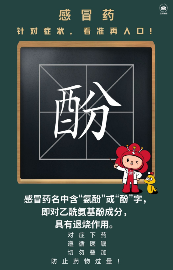 ②感冒药名中含“氨酚”或“酚”字,即对乙酰氨基酚成分,具有退烧作用;