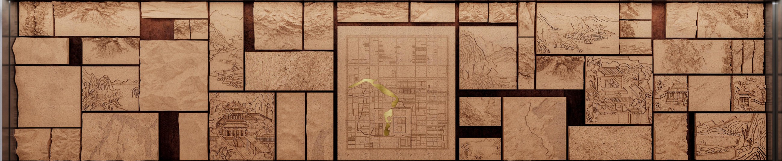 蓟门桥站-站厅墙面的“烟树长宁”抽象画