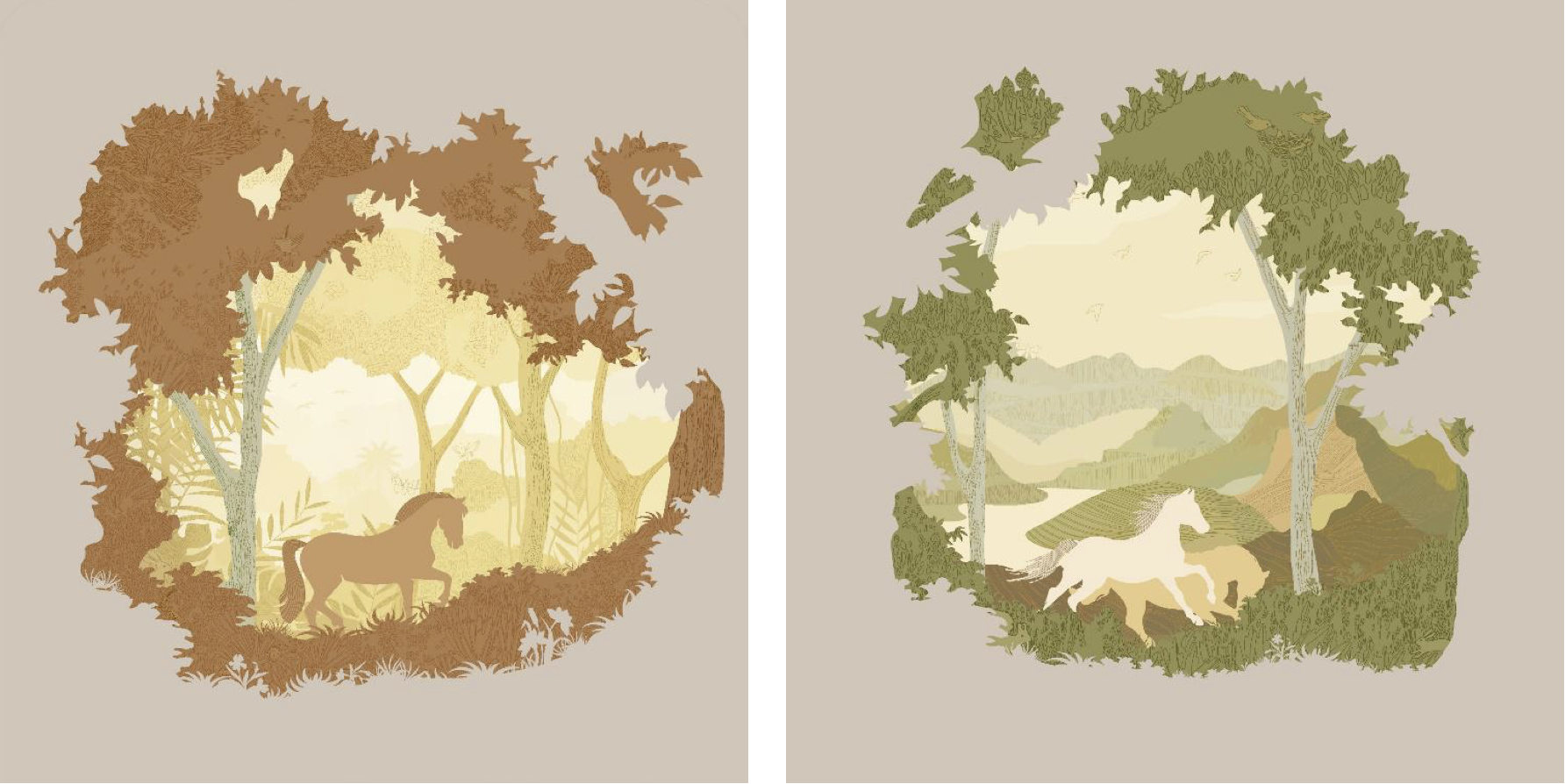 蓟门烟树是燕京八景之一。在线路最南端的蓟门桥站,车站艺术品围绕“烟树长宁”的题目展开设计。站厅墙面用长虹玻璃过滤光线明暗,将青山远黛、荫郁树木、飞鸟翔空的画面分层次装置于封闭空间,制造出一幅烟树缥缈中、观远山飞鸟的抽象画,突出朦胧美。站厅双柱间则采用金属雕刻方式表现树木与烟云,呈现祥和安宁的一派风光。