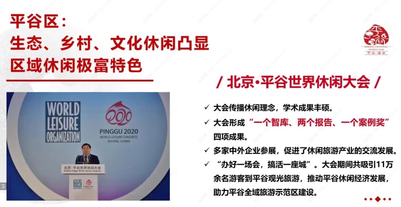 12月10日,第四届中国(北京)休闲大会暨疫后首都乡村旅游发展高峰论坛成功举办。本次会议由中国旅游协会、北京市文化和旅游局、平谷区人民政府、北京第二外国语学院主办,平谷区文化和旅游局、世界休闲论坛·金海湖智库、北京第二外国语学院科研处、中国文化和旅游产业研究院、旅游科学学院、MBA/MTA中心承办。世界休闲组织首席执行官克里斯蒂娜,北京市文化和旅游局党组成员、副局长刘斌,中国旅游协会副秘书长吴晓梅,平谷区委副书记、区长狄涛,平谷区副区长刘琳,北京第二外国语学院党委常委、副校长程维等相关领导参加会议。