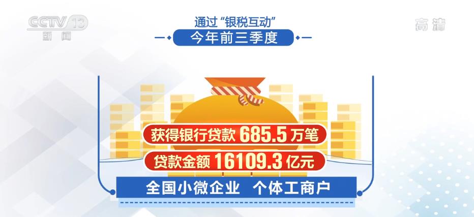 国家税务总局数据显示,通过“银税互动”,今年前三季度,全国小微企业、个体工商户获得银行贷款685.5万笔,贷款金额16109.3亿元,同比增长34.47%。