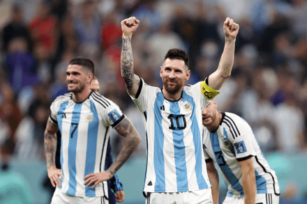比赛第69分钟,这时落后的克罗地亚队已大举压上,阿根廷趁着反击的机会将球给到梅西脚下。梅西边路左摇右闪成功带球突入禁区后,倒三角横敲给包抄的阿尔瓦雷斯,后者一蹴而就,3比0!此后双方再无建树,阿根廷队3球战胜对手,率先挺进卡塔尔世界杯决赛!