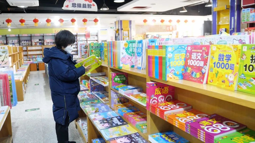 记者来到新华书店站前街店看到,已经有市民进店挑选自己心仪的书籍,并站在书架前“一饱眼福”。正在挑选教辅书的市民秦念介绍:“孩子每天都在居家上网课,课后需要多加巩固,而且马上放寒假了,所以打算给她买几本教辅书,充实一下课后及寒假生活。”