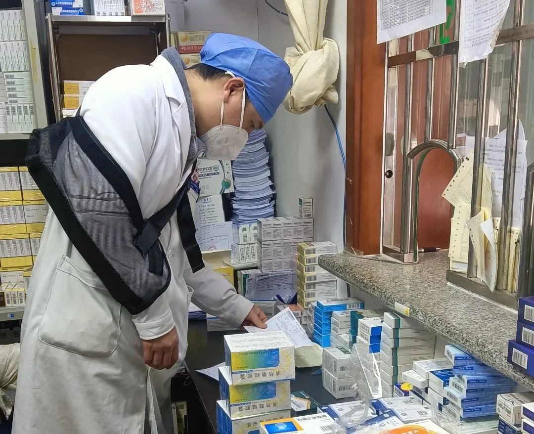 据了解,该服务站西药房原本有4位药剂师,有3位都病倒了,为了辖区居民能尽快取到药,郝金华强忍疼痛带着护具坚持上岗,其他药剂师也在线上为居民提供远程指导,及时对药品到位情况进行实时告知,减少患者白跑和就诊带来的人员聚集。另外服务站的家医团队2部健康通电话24小时保持通畅,用心用情守护人民群众生命健康安全。
