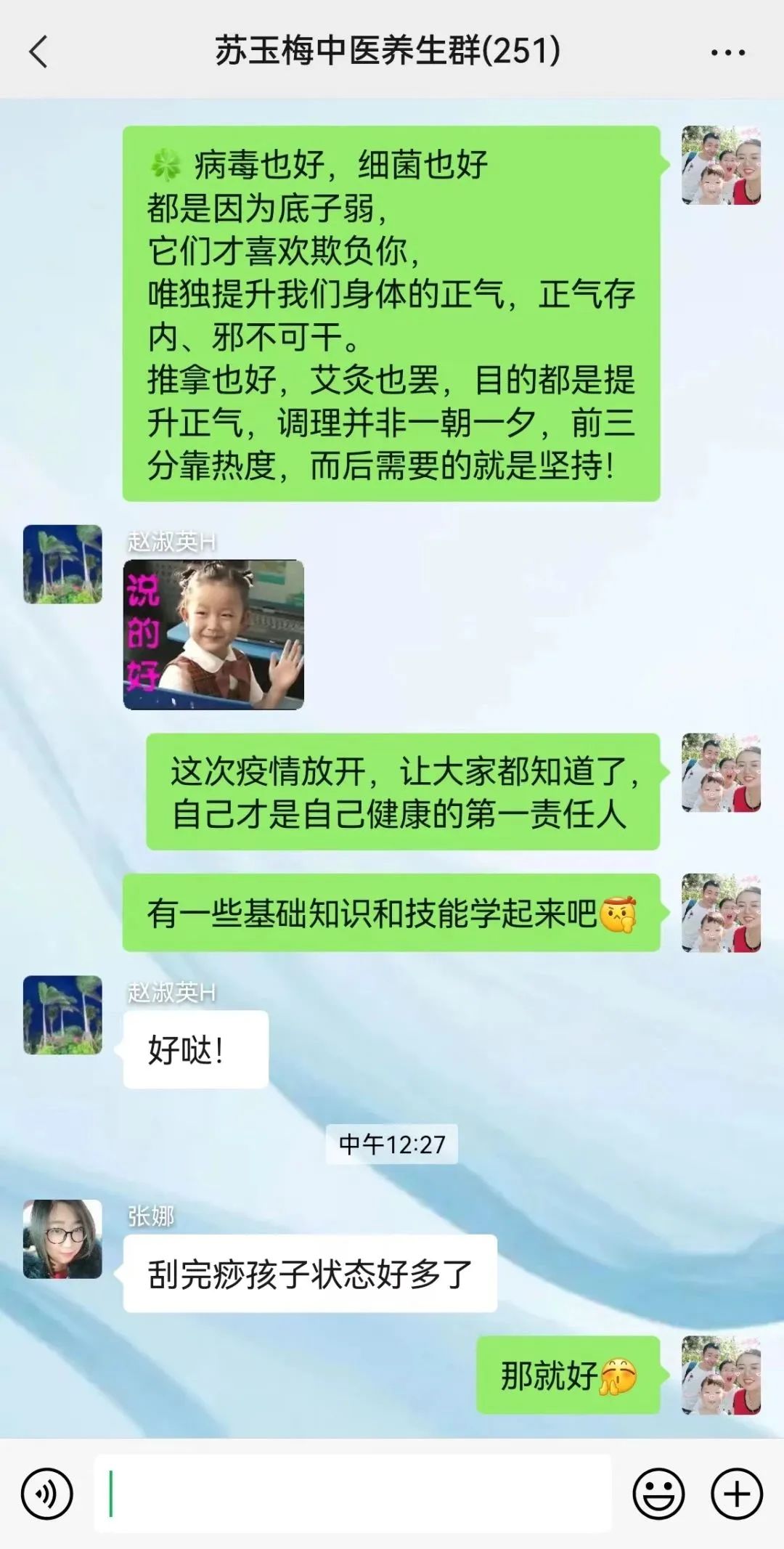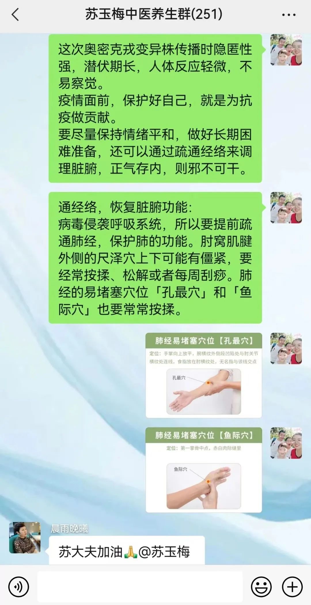 在五里坨社区卫生服务中心,中医科苏玉梅医生还通过微信线上,以自己家属为例,教授辖区居民通过按摩、刮痧、拔罐等中医方法缓解新冠肺炎不适症状,为居民解答问题,缓解焦虑情绪。