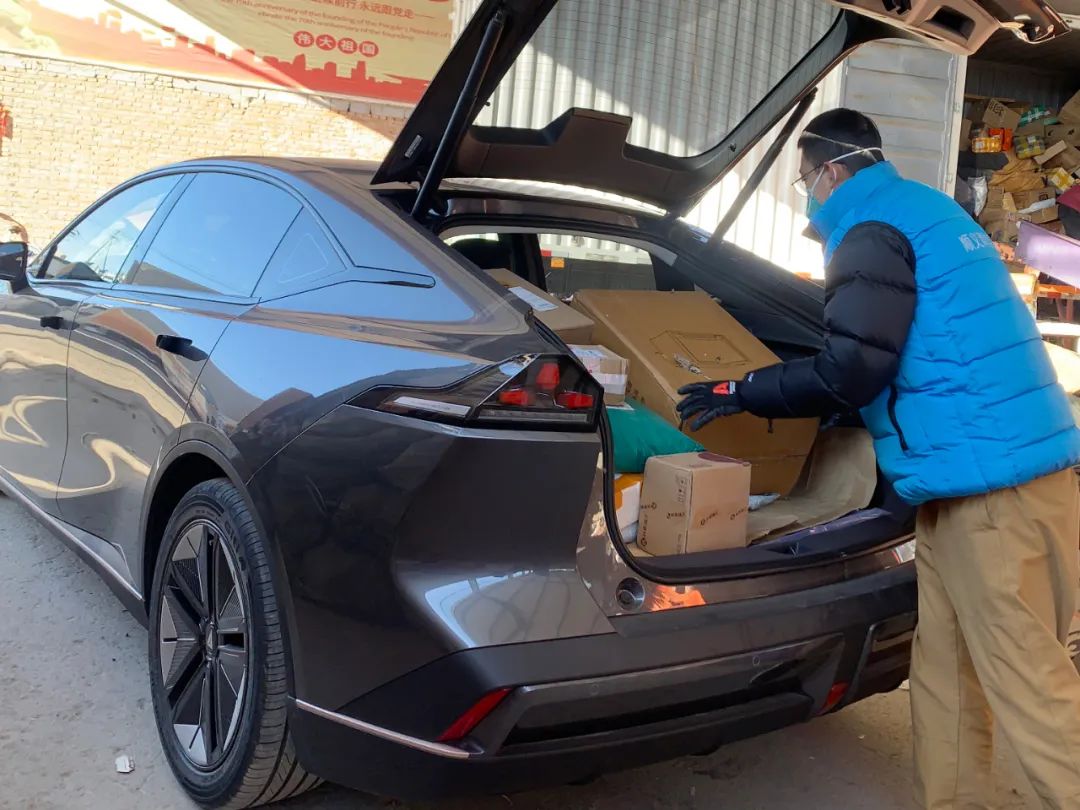 志愿者开私家车为快递网点配送货物。