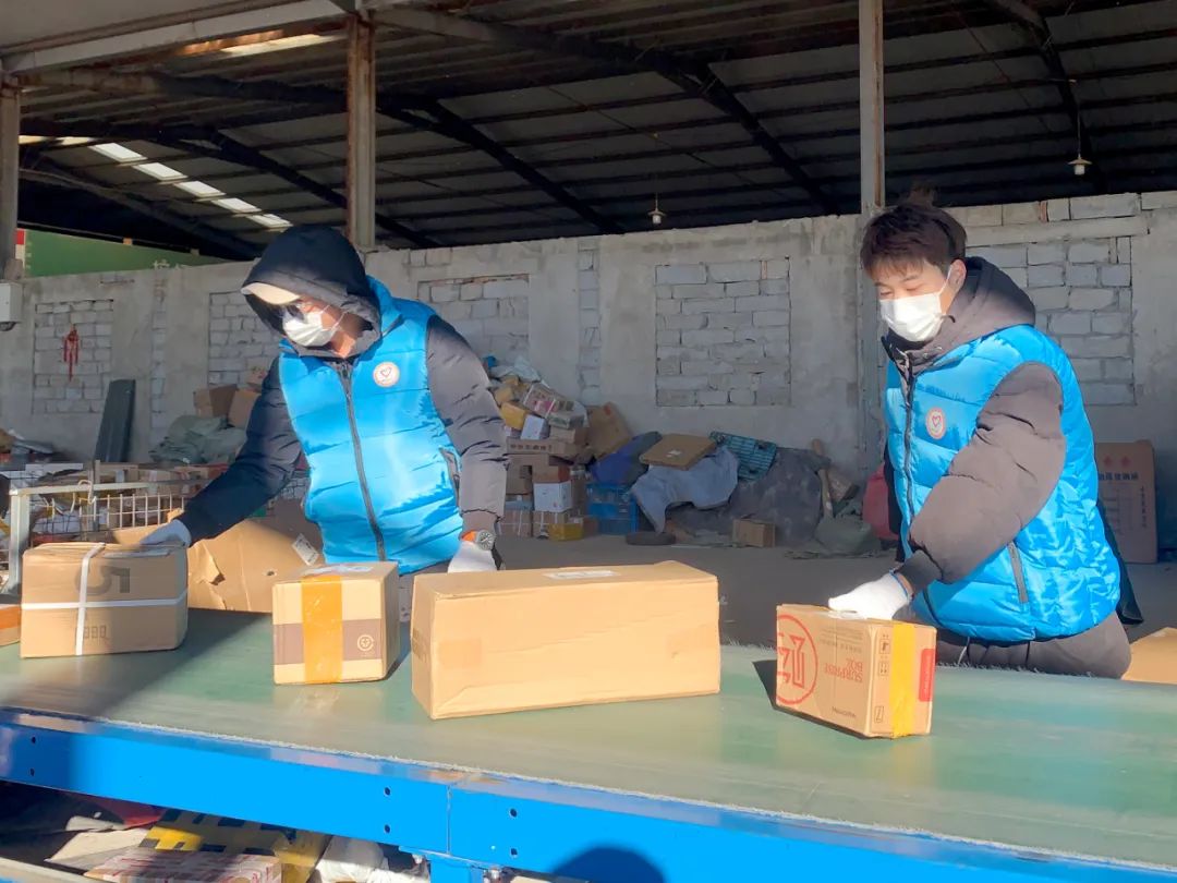 志愿者化身“快递小哥”分拣快递。