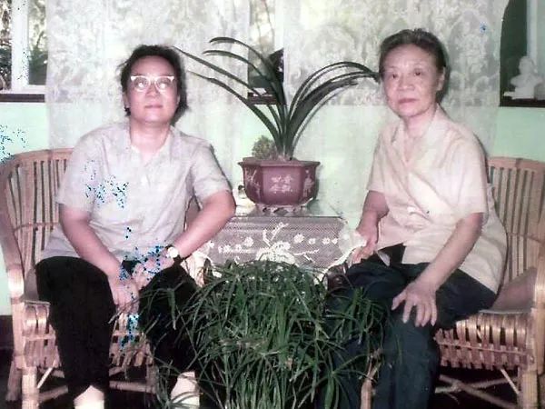 1982年8月,邹嘉骊(左)与母亲沈粹缜在上海