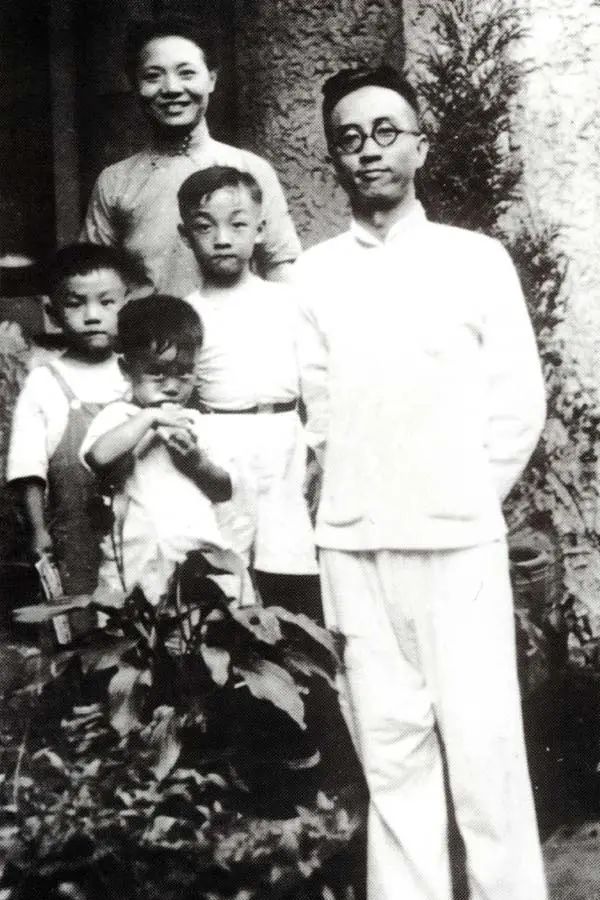 1933年全家合影,自右至左:韬奋和夫人沈粹缜、长子嘉骅、女儿嘉骊、次子嘉骝(竞蒙)